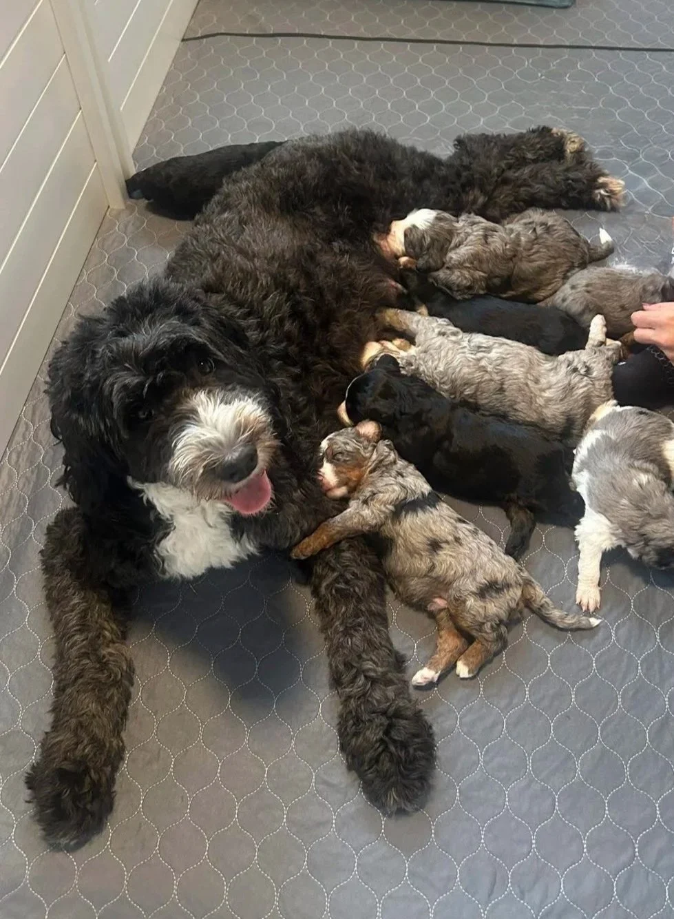 Tri-color and Blue Merle(the will look identical to full bernedoodles)